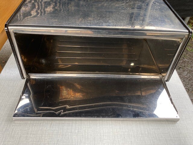Vintage broodtrommel van RVS plaatstaal. Goed functionerende trommel. Mooi exemplaar uit de jaren 70.