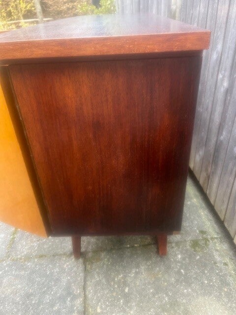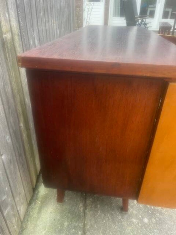 Kast is in goede staat. Alleen lichte fineer schade aan achter zijkanten van circa 0,5x0,5 cm. Super mooi model als aanvulling van je interieur. Levering is in overleg mogelijk.